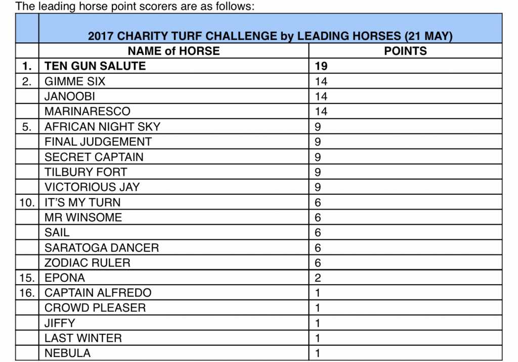 After a dramatic Betting World Greyville 1900, the Charity Turf Challenge landscape changed significantly as did that of the Vodacom Durban July. Long Shot Bonus point scorer, TEN GUN SALUTE, took home 19 points for his authoritative victory in the Gr.2 event whilst the heavily backed favourite and ante-post July favourite, Elusive Silva could only manage fifth place. Marinaresco and Al Sahem are now top of most bookmaker boards with the all important Daily News 2000 looming in two weeks’ time.