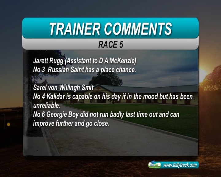 8 years 6 months agoZietsman Oosthuizen wrote:chicken n chips wrote: Ziets I have blown my budget for the week already so can't be backing any of your runners. All the best big boy hope you lead in a winner or three