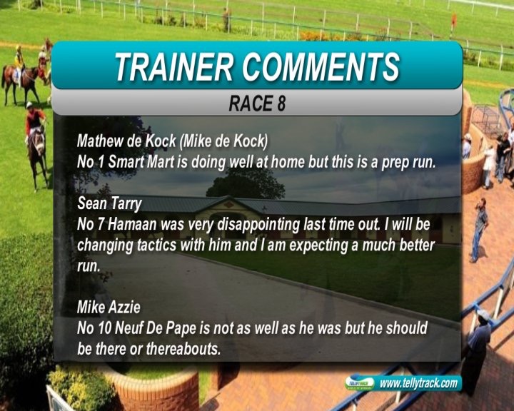 8 years 5 months agoCThorsepunter wrote: Good day all, do anybody know if Dom Zaki will be tipping today on Under Starters Orders and if so what is his (Pick6) selections please. I am at work no DSTV.
