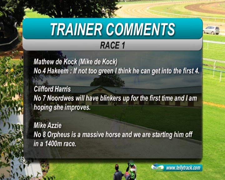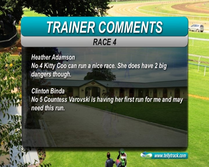 R5: Could prove another Tarry benefit day - the favorite Rebel to the Fore only has to bring her form to the track to win this - she does have her problems though (only her 6th run in the 2 years that she has been racing). If the wheels do come off, it looks like the only ones who can take advantage, would be Gratuity, Outlander and Rebel's Diamond