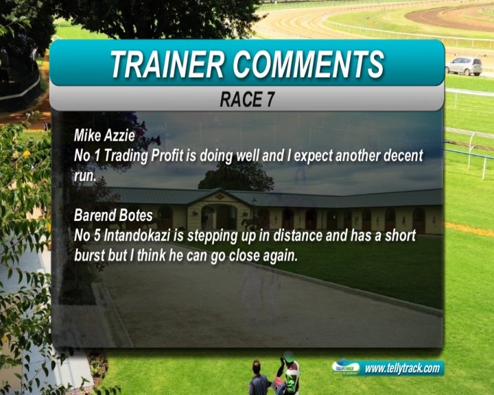 R7: Again a few stand out imo; Trading Profit, Nephrite and Intandokazi all look ready to win again and I can't really split them; Trip to Troy races without blinkers and likes this track, so could surprise, while Var's Your Daddy is lightly raced but imo needs further improvement as the form of his last start look suspect to say the least