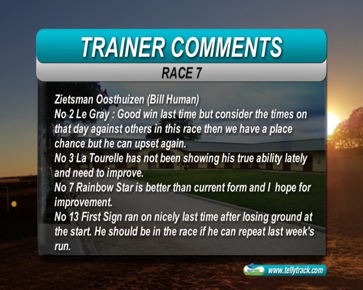 8 years 3 months agolotters wrote: Hi ZIets , Sorry to be a bit ignorant but what's your tie up with BIll HUman.? Can't make out if you assistant trainer or BIll himself . Cheers