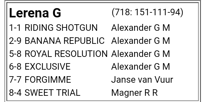 if he gets on your horse in work and tells you it will win a few be with him - great judge and down to earth - met him at the Vaal years ago when he was at his peak and had no airs and graces