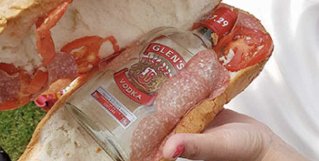 The offending butty was opened up and the £7.29 bottle was discovered, partially wrapped in tomato and salami.