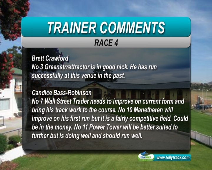 Race 4: Hundreds was dropped out from his wide draw on debut, and took a while to get going, but was finishing best of all. We expect him to win today. Greenstreettractor finished just ahead of him last time, also from a wide draw, and is the danger, but I expect that Hundreds will have made the greater improvement as this is only his second run.