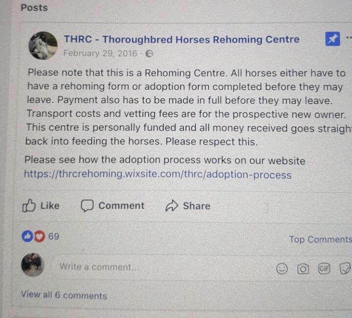 the National Horse Trust or another rehoming facility approved by the CHIEF