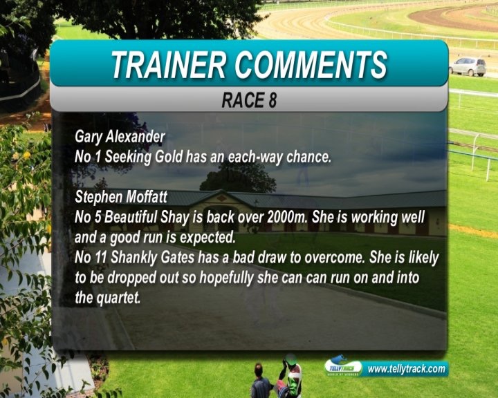 R8: Azkur won a nice maiden, but now tries a lot further and looks to have been given a tough task by the handicapper, so I'm looking at the older fillies receiving weight from the 3 yr olds and Sammi Moosa imo now will appreciate this sort of trip; slow away in her last start when supported in the betting, so must have chance; Seeking Gold in form but may struggle to give SM 6.5 kgs and Tundra Taita although not without a chance, also has a tough task at the weights; Beautiful Shay, like Sammi Moosa, is probably now also looking for this trip and can't be ignored either