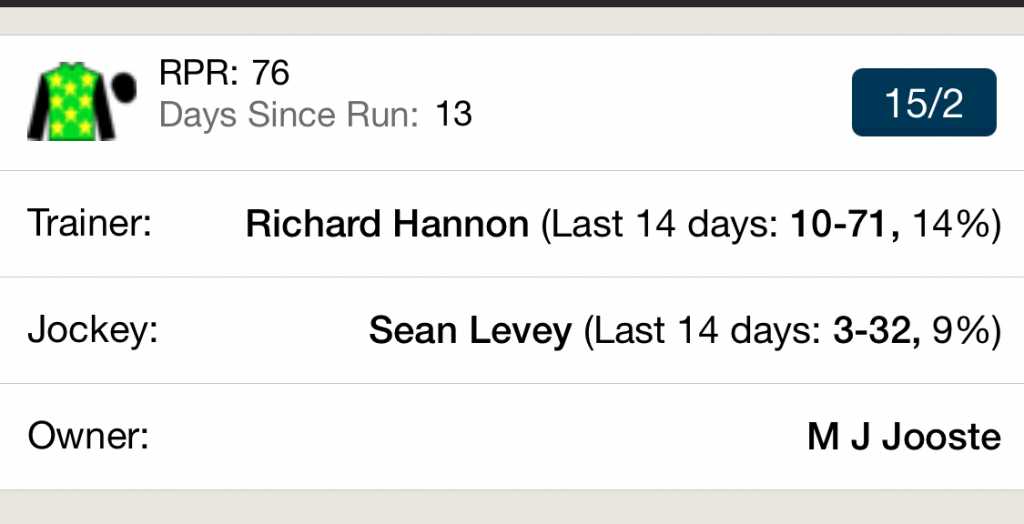 the old man, dtf, posted an interesting fact a month or so ago about the horses from the stable that he knows. He said that because of the stable the bookies shorten the prices when they debut and usually the stable wins on its 2nd or 3rd run so the first one could be a goer today.