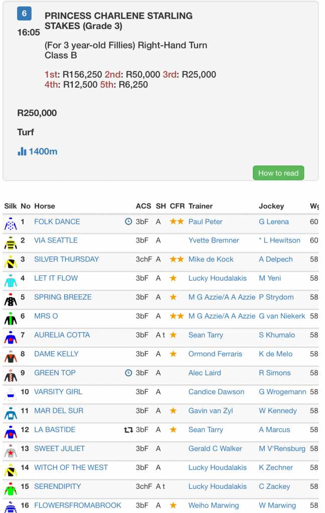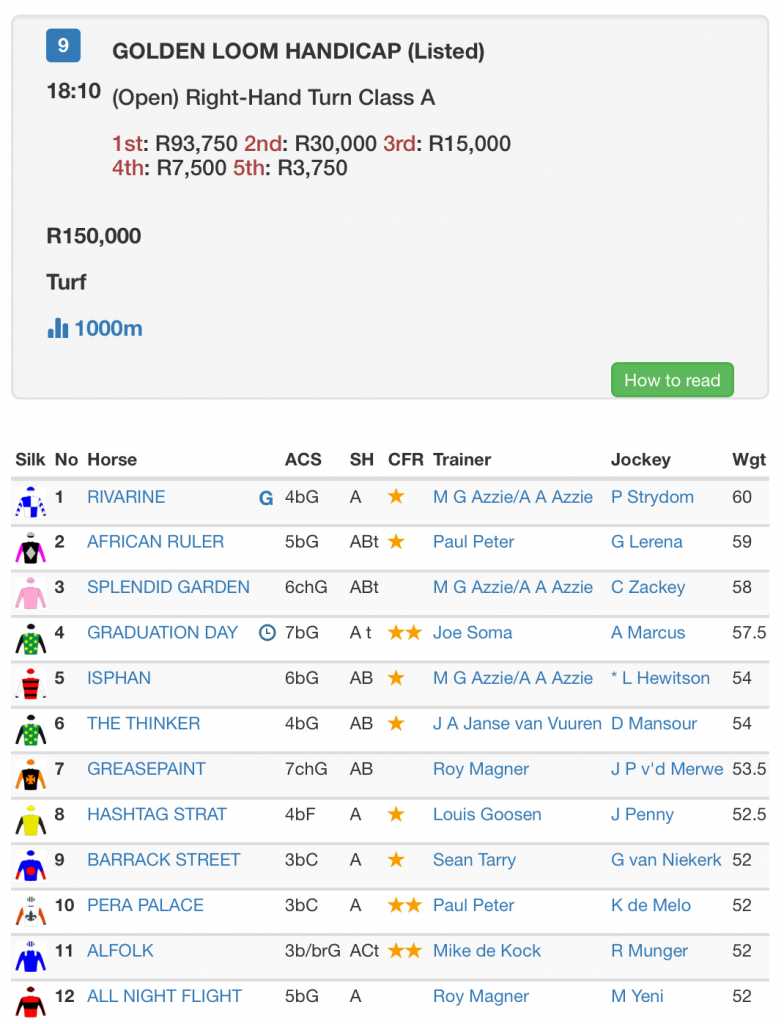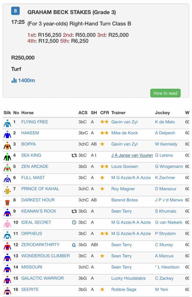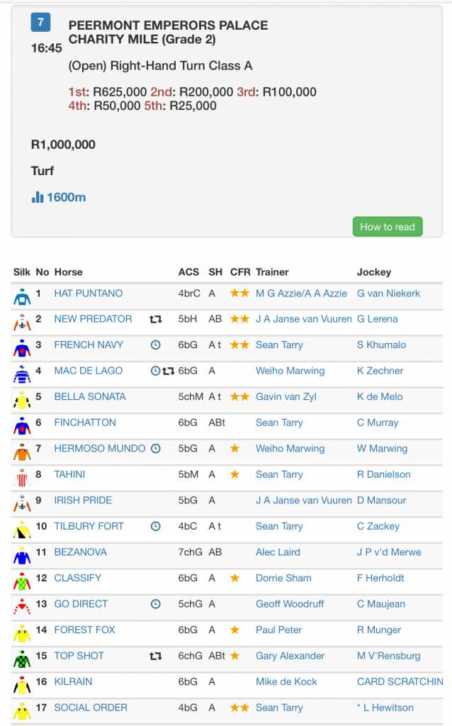 What you like in the EMPERORS PALACE READY TO RUN CUP over 1400m ?