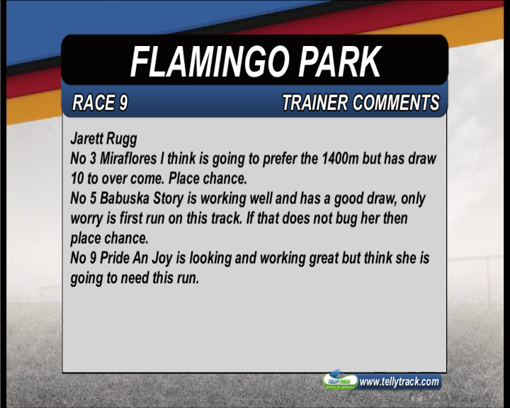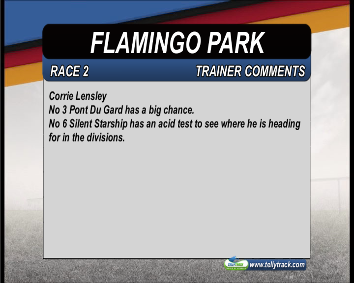 Race 2: Pigeon Flyer(2) 6-1 Lost ground last start and has been running in a lot stronger. Distance a slight worry for me
