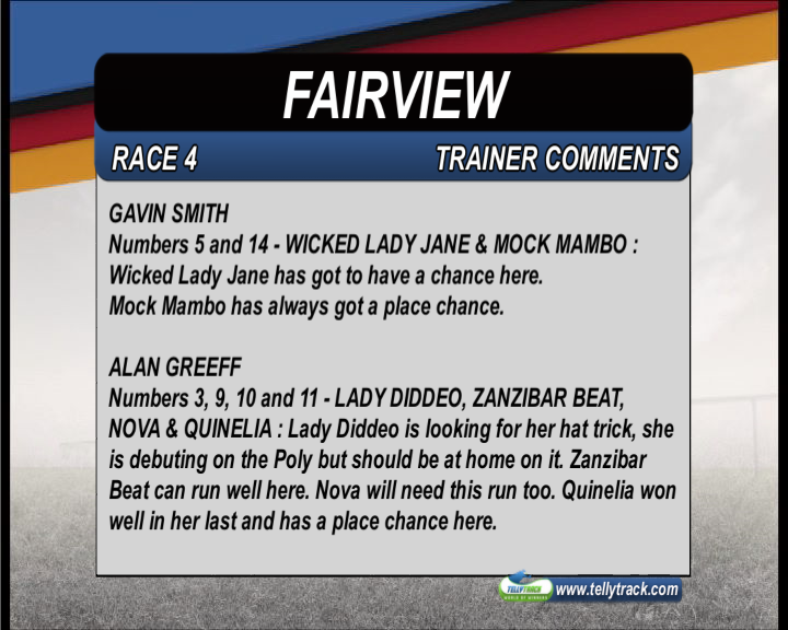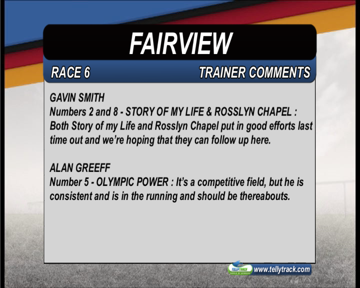 R5 For Luck's Sake loves the poly,first time this far possible place chance,Buck Eye good last run and will appreciate the trip.Nabisco tries the poly should run well off a low weight plus a claim 4
