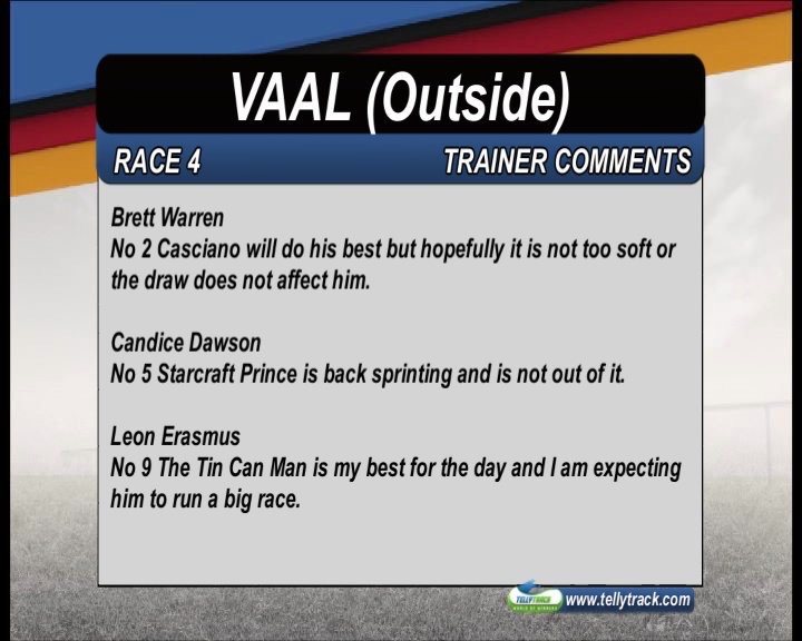 Race 4: Cannes would win if he can be held together off his last race, I don't think he can though and that opens the door for casciano - also stables only runner for the day. Slight chance that the Tin Man or Premier Show could improve by about 2 or more lengths to win here. Flag Of France could produce a place run.