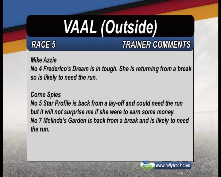 Race 5: There is so little between Fish River and Frederico's Dream here - in fact Frederico's Dream having the edge on class that I suspect the other de Kock runner Only To Win is going to successfully drop down to the shorter trip and win.