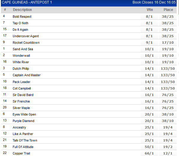 Re: Antepost Betting Cape Guineas - WIDE OPEN