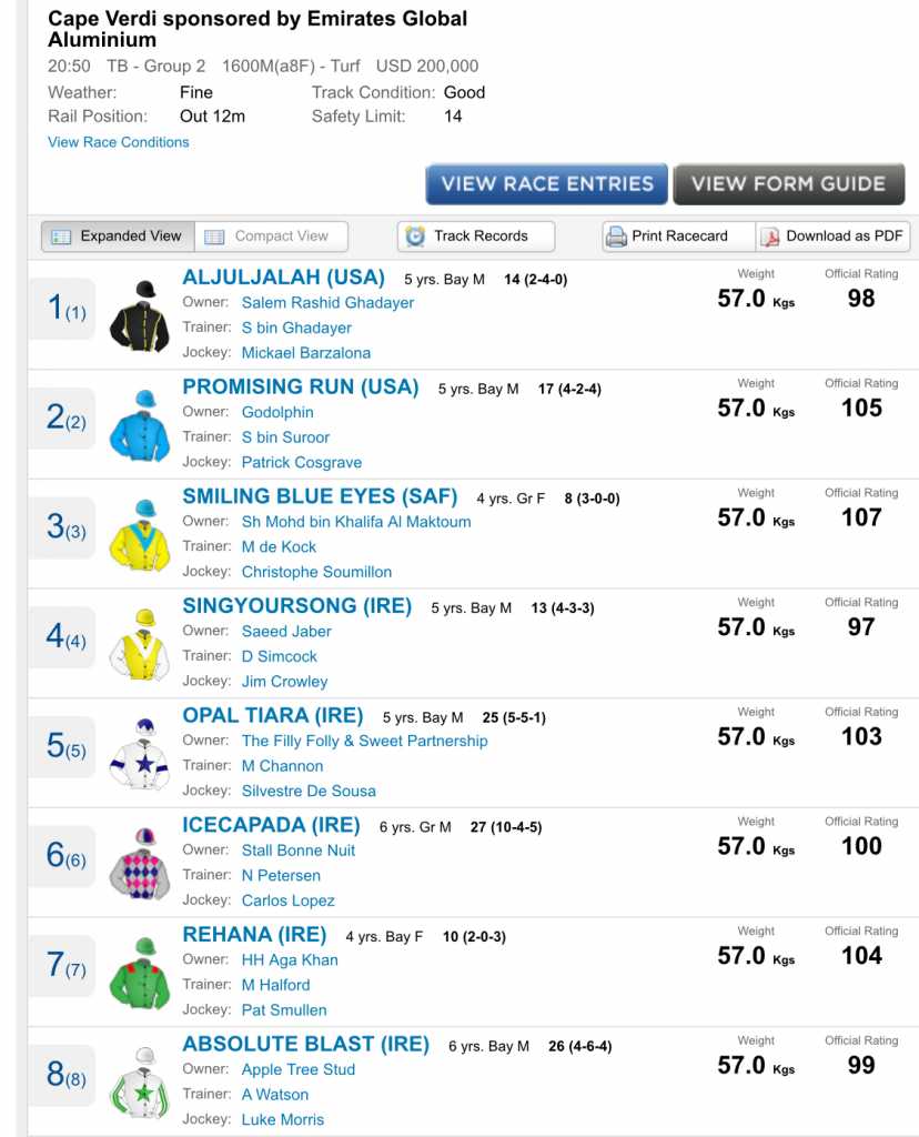 I wonder if that horse is a bleeder - are they allowed to use lasix in Dubai