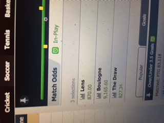 My example involves quite a large total outlay but you can play off any base which suits your pocket. ( I use Interbet's 'In running' site which accepts bets of just R5 per play).