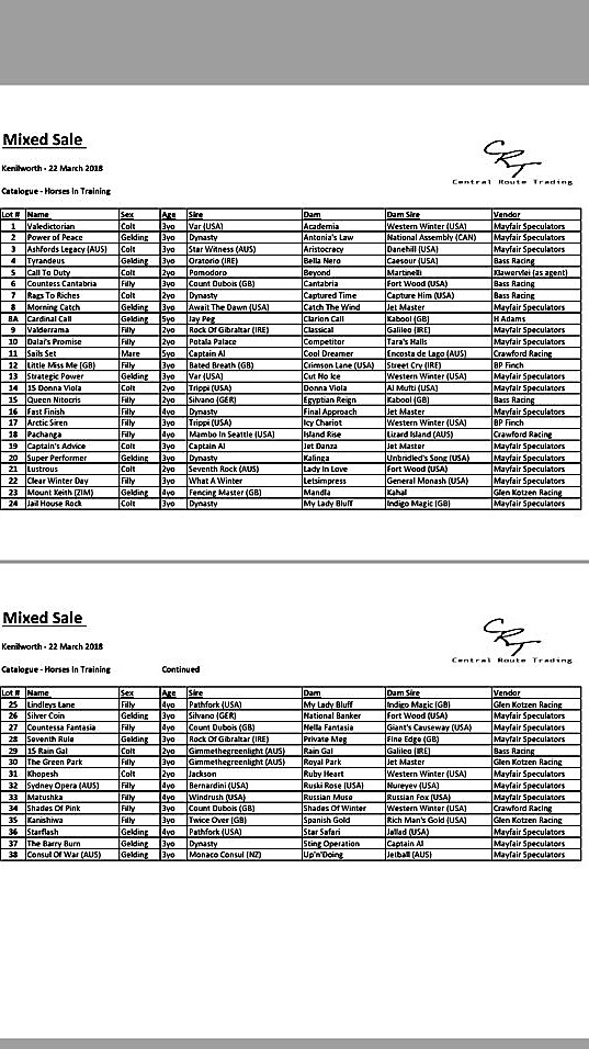 Anyone interested in the Sale tomorrow or attending ,Mayfair's Derek Brugman gave Turf Talk ( AKA - Central Route Trading/ Grant Knowles - Controlling Editor / Racing Association / Cape Thoroughbred Sales / Sales Ring ) a round-up of what buyers can expect.