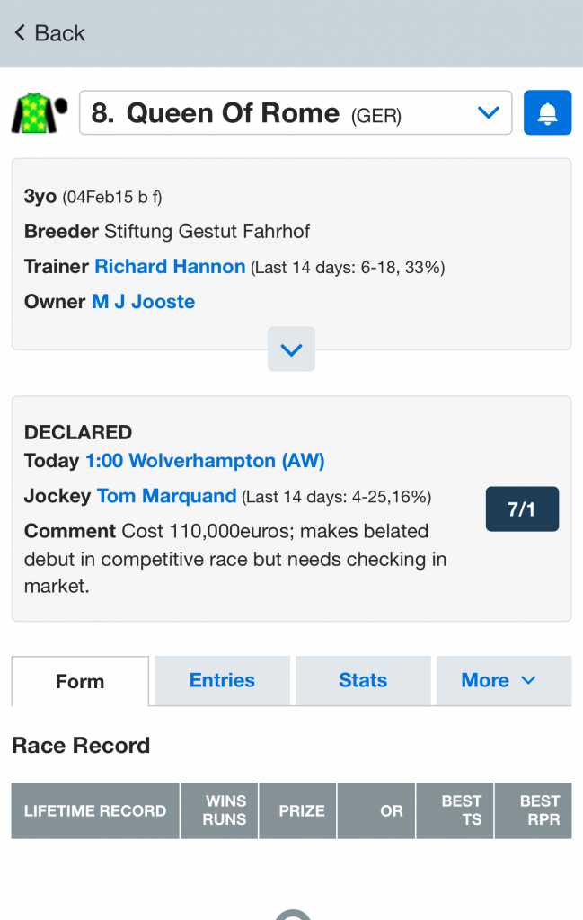 In the first at wolverhampton. In Jooste name not Mayfair?