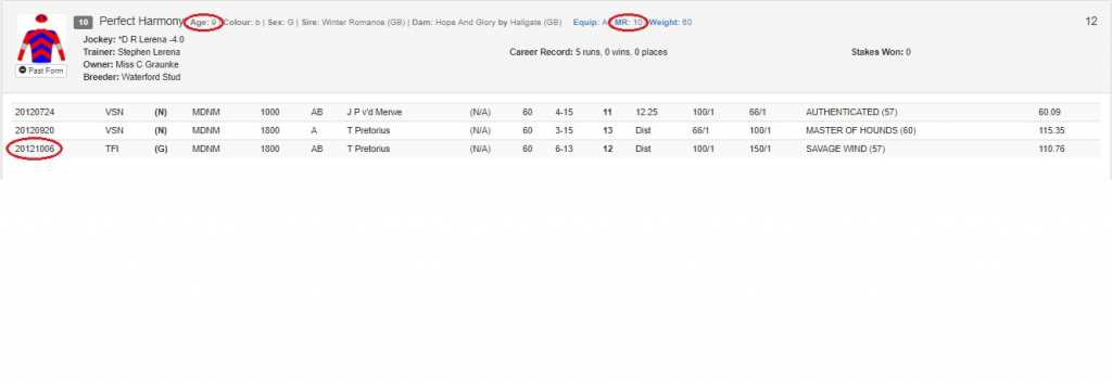 7 years 4 months ago.....was this previously trained by S Boyarsky out at the Vaal....... :huh:Dave Scott wrote: One would have to guess a miricle if it could win?