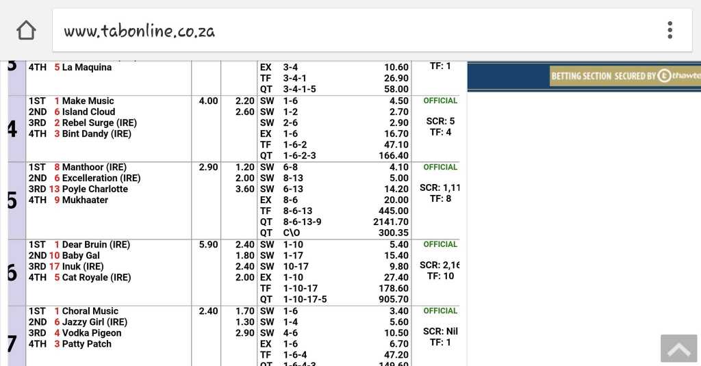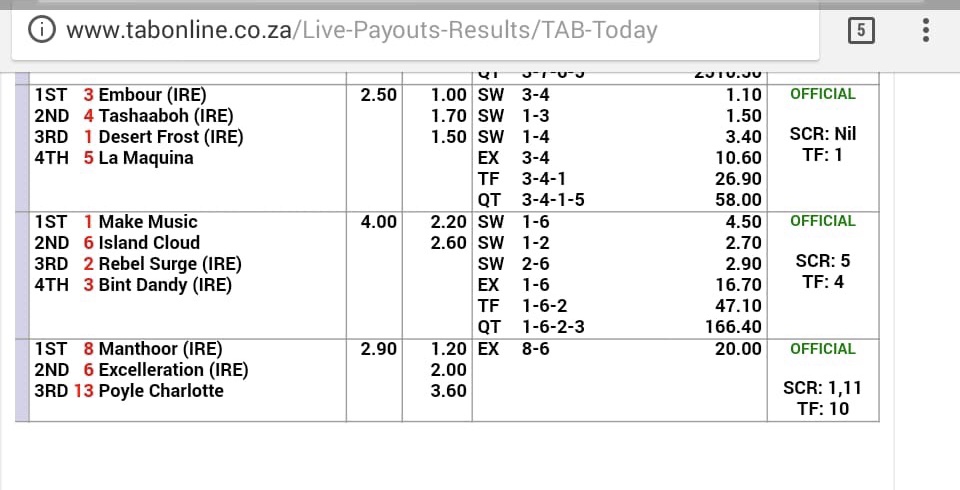 1st race winner pays R99 for a win (it was 6-1 and paid R6-90 on the Australian tote) yet the double somehow manages to pay R26.