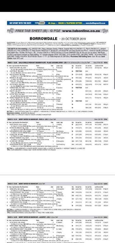 :oops: ....my bad...was too busy watching rugby to hear or see why there was this KZN race duplication.... a twist on a blitz..:dry: ...be prepared for future race cards and more TAB sheets with mixed races.....frankly too much for me and will further refrain from punting in odd places when they cant field full carded races....