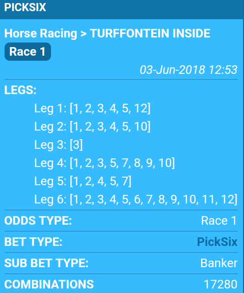Guys statistics do not work in SA racing! You have to study the trend and peculiarities and behind the scene information. Yesterday a quiet trainer and breeder won in Mauritius, Kenilworth and Greyville! All his horses won at all the tracks!! Big odds, jackpot. We lose bets cos we are lazy, nobody is ready to study behind the scene information. We just wake up and punt and expect to win.