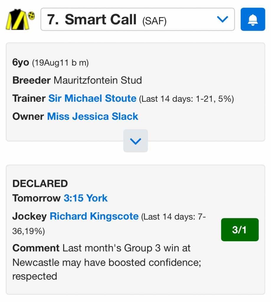 Nice win by Smart Call. Should try a race in Canada or USA.