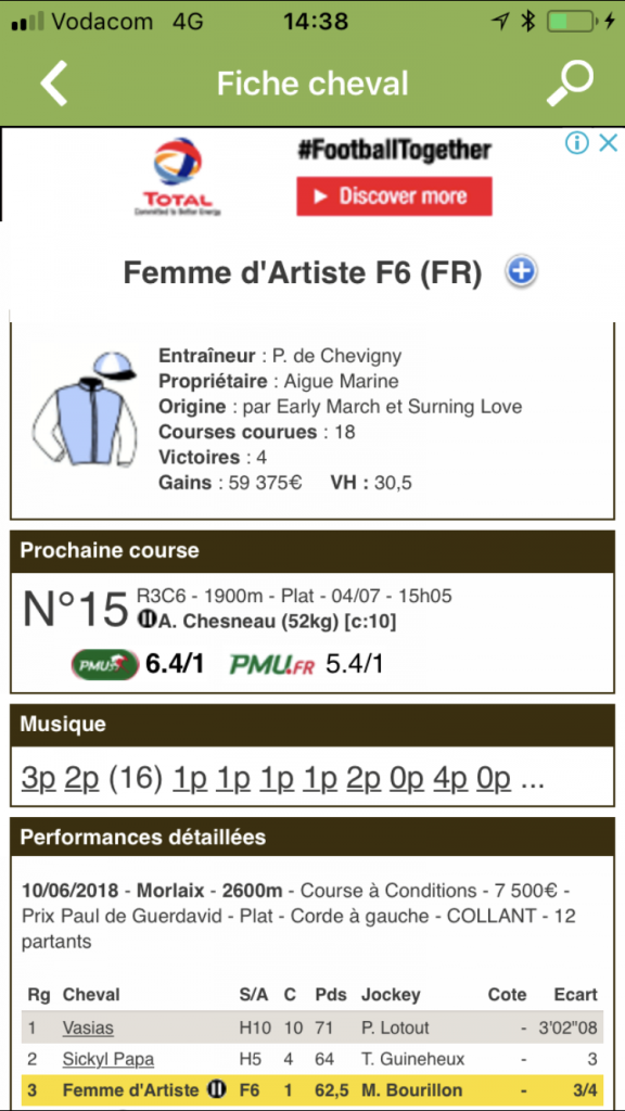 6) 15 Femme D’Artistste (25% Win and 75% Place of my daily budget)
