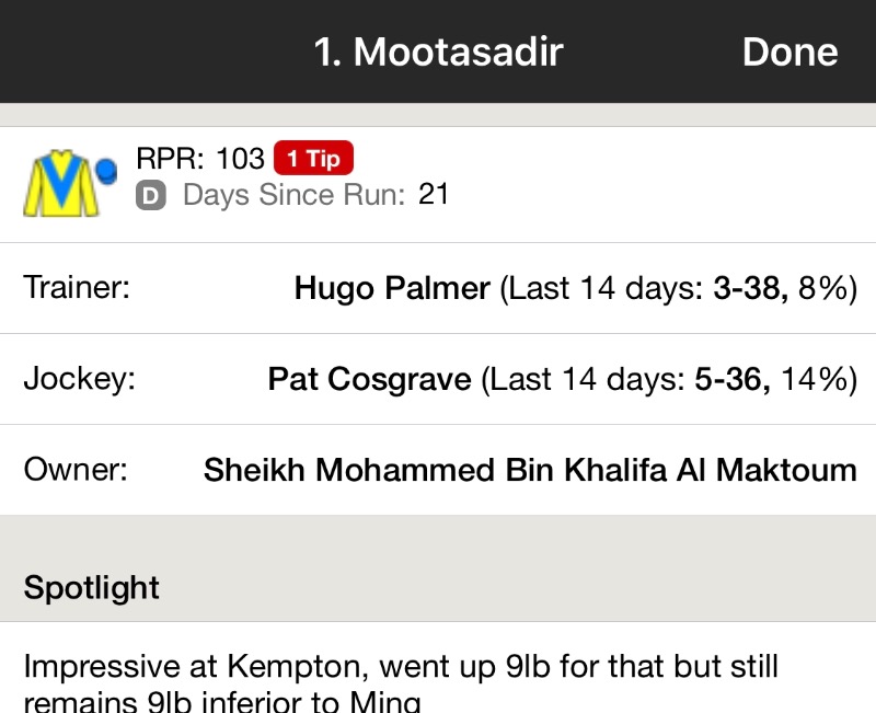 7 years 6 days agoSteckenpferd wrote: R3 Newmarket Dandhu E/W @16/1