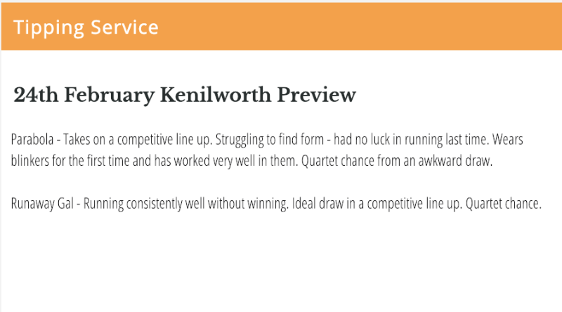 Race 4 - Ginger Biscuit 8/1. Has dropped 16 points in last 6 months. Returning to form and a touch unlucky the last run. Going the extra 200 today should suit down to the ground and is a massive runner...