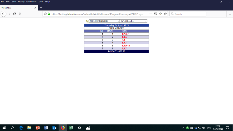 6 years 6 months agoEither finger trouble or outright theft... official dividend for Chelmsford BP declared as R650 but only a total of 70.9 winning tickets from a pool of R54520 should pay R769 ??