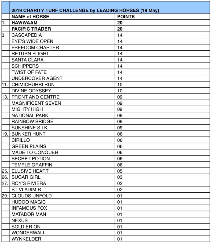“Please note, Charles was incorrectly recorded as having finished third in the Gr.2 KRA Guineas where it should have been Bunker Hunt. This will be amended immediately and the 6 points allocated correctly. Our apologies for the error.