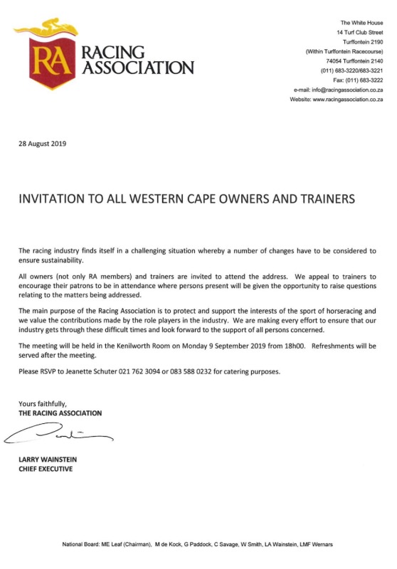 Why would Larry address the Western Cape before he addresses the Central Provinces? Why would his message not be delivered by the WC RA board to their members whilst Larry addresses the Joburg locals ar the same time? So once Larry addresses the Western Cape, why would you bother having a separate meeting up there?