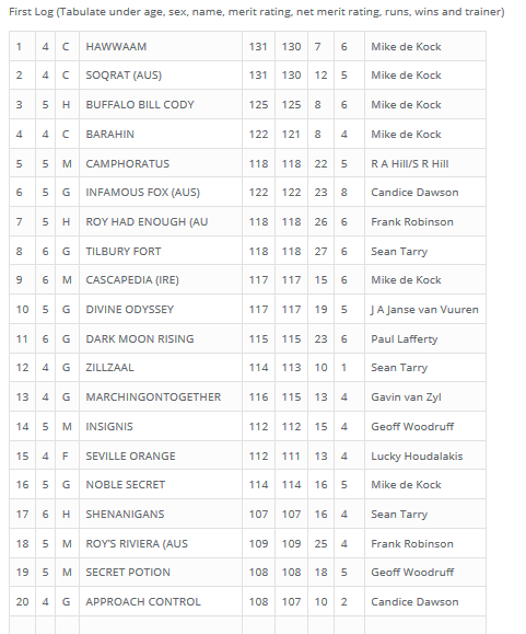 I note the absence of the Cape horses....the KZN guys have nominated 5 horses, and there's one from Kimberley too.