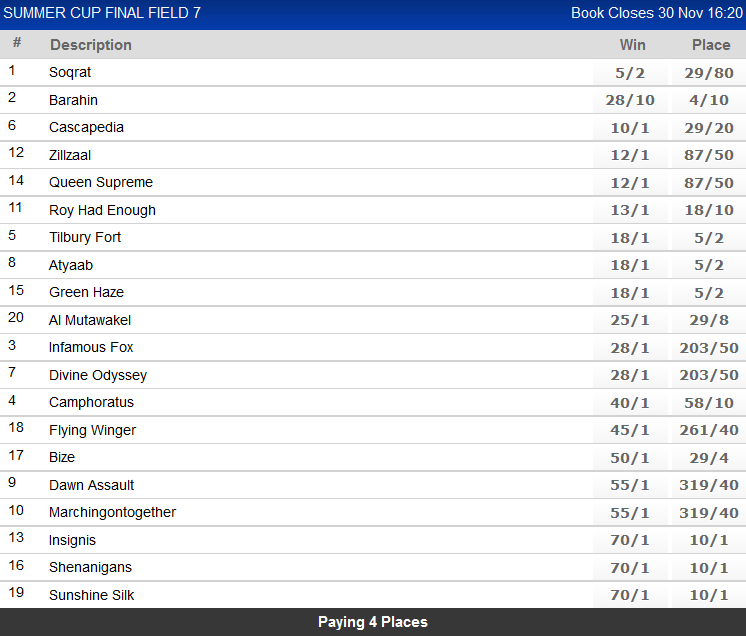 Hip hip for Al Muta getting in....any outcome win or place is pay pay with packet of ante post multiples standing