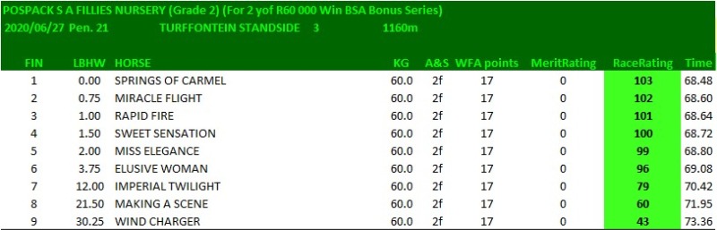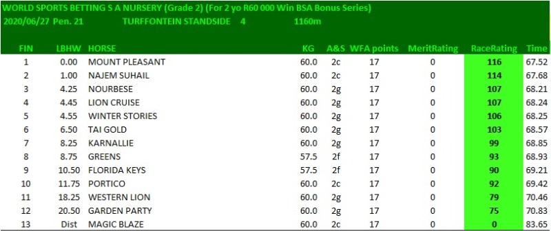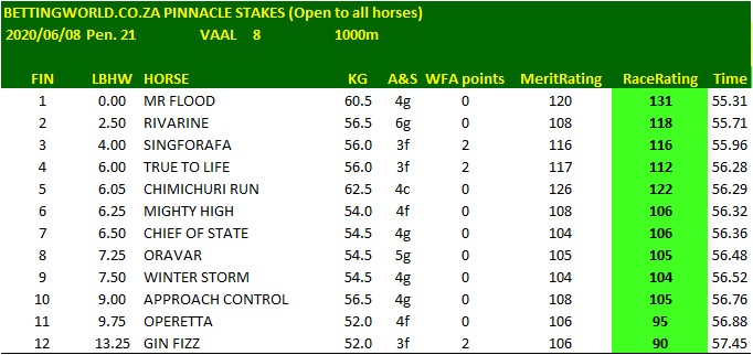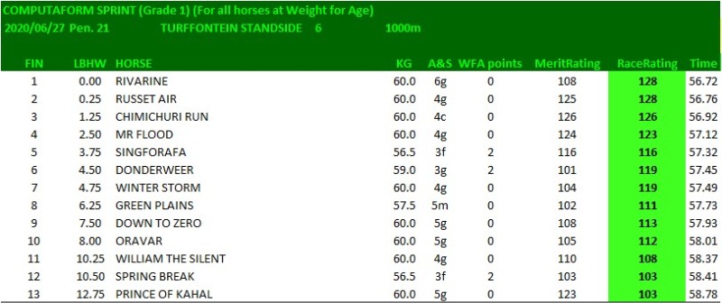 Thanks Charl - always interesting to see how others rate the races; concur more or less with most, although I do not agree with the ratings for the Computaform Sprint - for me the top ones ran way below their best and I find it hard to believe that Rivarine suddenly improved 20 pounds - so for me I think your ratings are about 12 pound too high - but hey, each to his own.