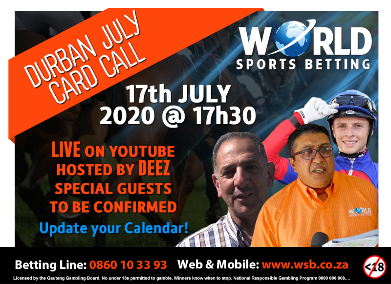 "Due to an unexpected technical glitch, we will only be going live with our Durban July Card Call at 6pm. Apologies for the delay!"
