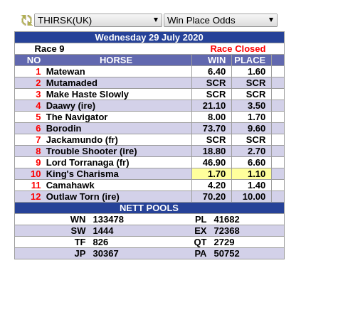 I have notices a couple of incorrect tote favorites declared by the tote of late. The latest at Thisk tonight. On saftote the giving it to the 9 which paid R46.90 a win compared to the winner which was paying R1.70. Probably the 4th one in the last 3 weeks. I bankered the tote fav in all my exotics so not a happy chappy right now.