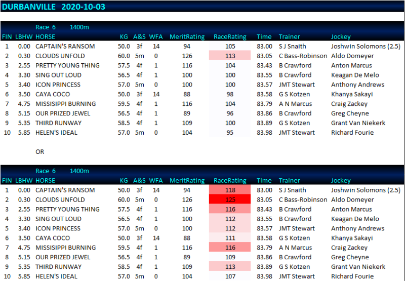 Smart three-year-old CAPTAIN’S RANSOM has seen her rating increased from 94 to 116 after she finished strongly to beat some talented older rivals in the Grade 3 Diana Stakes for fillies and mares over the Durbanville 1400m on Saturday. In choosing a line horse, the Handicappers opted to use runner-up CLOUDS UNFOLD to the 121 she achieved when winning the Majorca Stakes in February, which was the highest rating she achieved when racing against her own gender last season.
