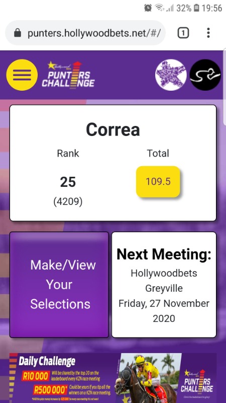 Re: Re:Re:Hollywoodbets Punters Challenge - Reloaded