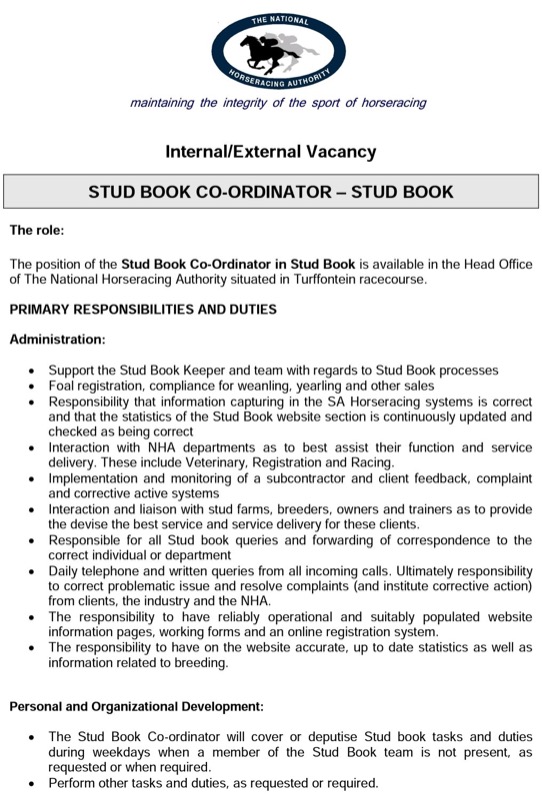 Applications open - Stud Book Coordinator