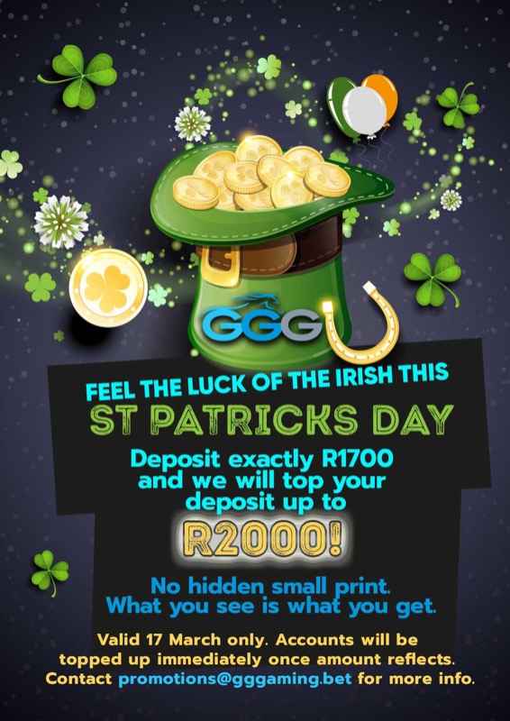 Deposit R1,700 into your GGGaming account on the 17th March and your account will be immediately topped up to R2,000.