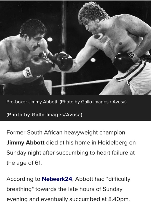 Renowned boxing historian Ron Jackson has described former South African heavyweight boxer Jimmy Abbott as “the best SA heavyweight never to have won a world title.”