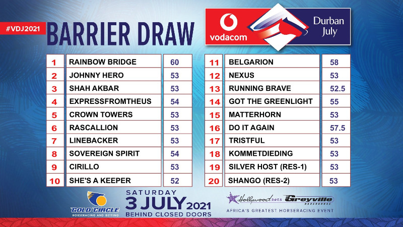 Re: The Vodacom Durban July Log as at 31 May 2021
