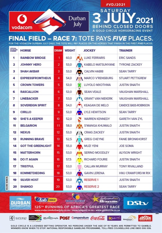 Re: The Vodacom Durban July Log as at 31 May 2021