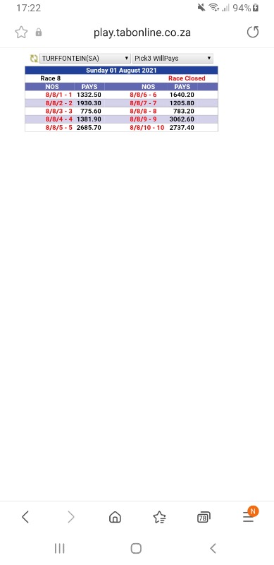 Last Pick 3 Will Payouts differs from the final declared dividend. From a will pay of R1,381.90 it went up to a final declared dividend of R1,909.60.Whose bluffing who!