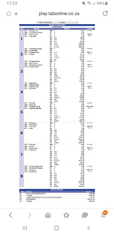 Routinely, exotic bets in the country are having to rely on outlandish results to get big dividends, to mask the large takeout from the pool. We regularly see results these days for which the value of the pick six payout would be a couple million, but we get a r750 000 payout, and punters are happy.