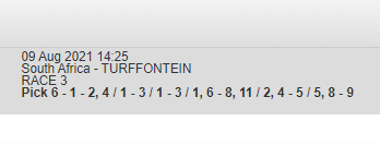 And as usual with our shit show that is SA racing,the horse that needs to run a race for most people even runs out the top 4.