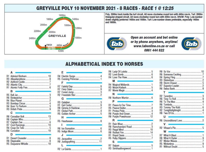 Racecard: www.goldcircle.co.za/.../rac.../greyville_10_nov.pdf