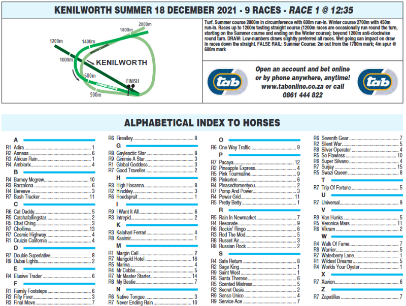 Race 6 A very open race. While Hoedspruit and Vikram are the class horses, Rockin Ringo and FireAlley are well in at the weights. Native Tongue, Super Silvano and One Way Traffic are all improving